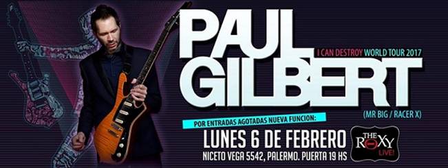 Paul Gilbert se estará presentando el domingo y el lunes en el Roxy Live, la segunda fue agregada por entradas agotadas. El virtuoso guitarrista trae su show a nuestro país, en este caso acompañado por Thomas Lang (Fripp, Peter Gabriel) y Pete Griffin (músico de Zappa, entre otros). El tour mundial se llama «I can destroy», y muestra una vez más la vigencia de una de las guitarras más reconocidas.