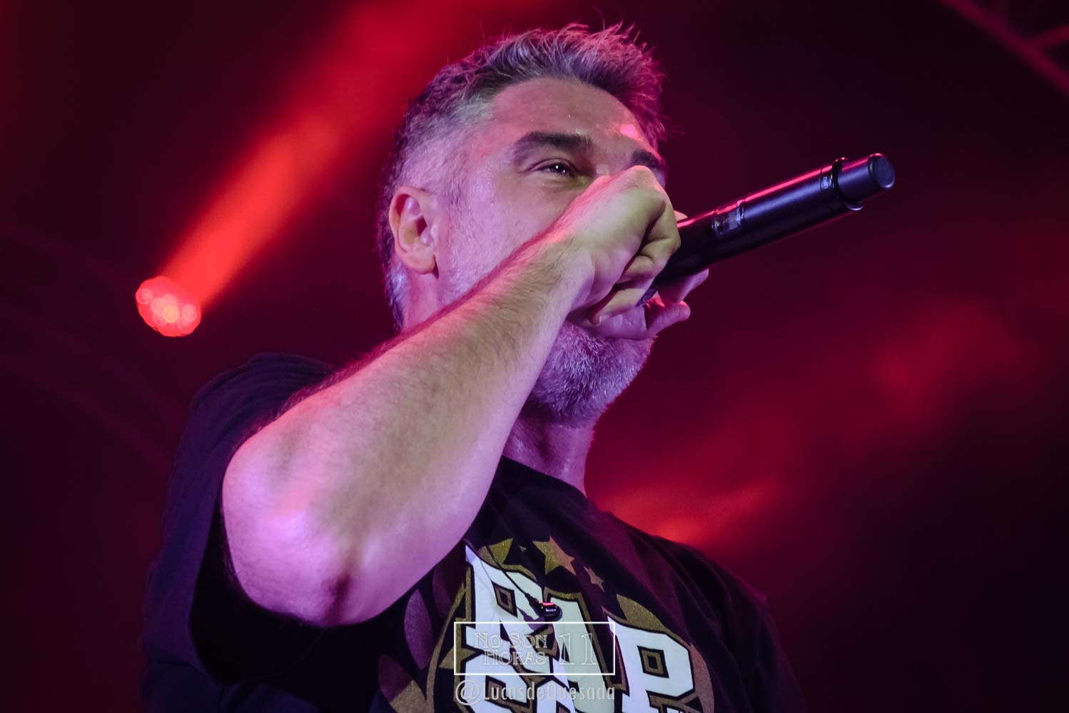 La esquina de Corrientes y Bouchard recibió la prosa de Kase O durante la noche del jueves pasado. Una convocatoria que reafirma su historia musical acompañó al español. Lucas de Quesada se hizo presente y lo retrató de esta manera.