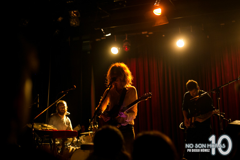 De primera Christina enamora, luego hipnotiza, su voz es dulce y triste, esconde sus ojos cerrados detrás de su pelo suelto. Recordamos a Kim Gordon o Beth Gibbons cuando canta “Canción del Eco” creando una atmósfera casi lúgubre pero esperanzadora. Por momentos se vuelve un cuadro de Lynch con el telón rojo de fondo y pocas luces encima, ¿dónde estamos? ¿es realidad o fantasía? ¿O es su voz quien nos transporta a lugares imaginados?,