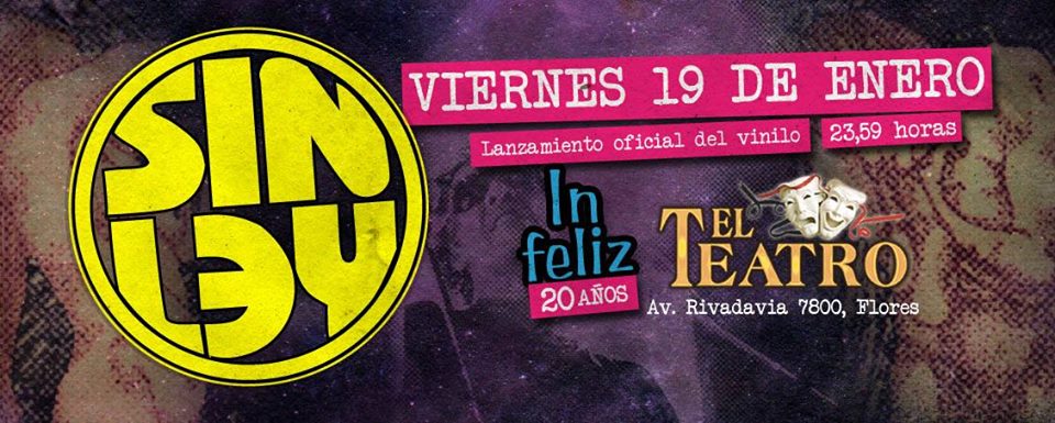 2) Empiezan los festejos punkies: Sin Ley, legendaria banda del punk rock local, comienza a festejar sus dos décadas de trayectoria en el Teatro Flores el próximo viernes a partir de las 23.59hs. La ocasión sirve de excusas para el lanzamiento del vinilo de «In Feliz». Será una noche de recuerdos para todos los asistentes. Los tickets se consiguen por www.tuentrada.com.