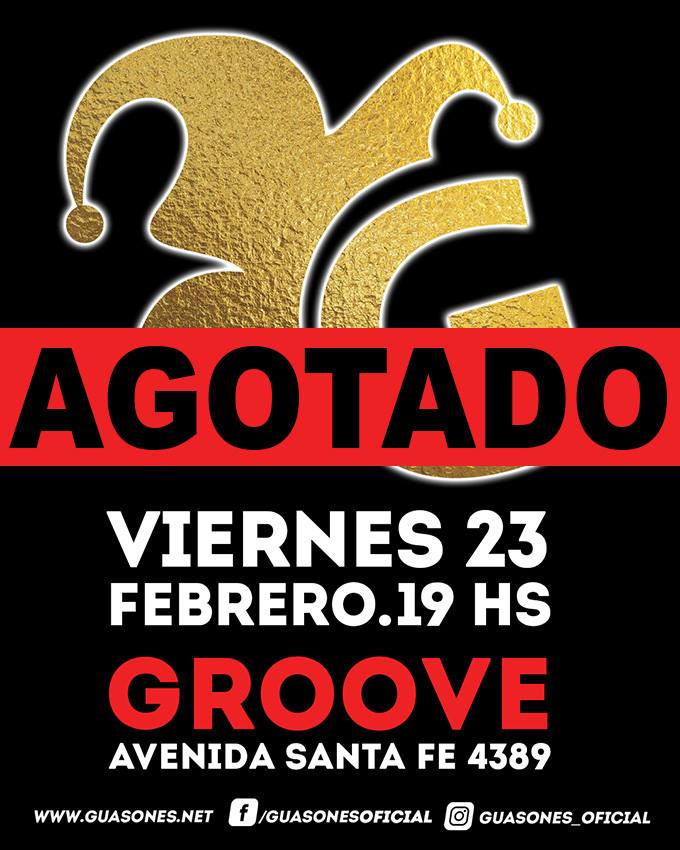 2) Las costumbres de febrero: Como ya ocurrió en 2017, Guasones llega a Groove y cuelga el cartel de entradas agotadas días antes del concierto. Facundo Soto y sus muchachos vienen de participar en las carteleras principales de varios festivales de verano, y eso los posiciona cada vez mejor dentro de nuestra escena. El concierto arranca a las 21hs puntual.