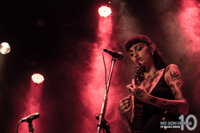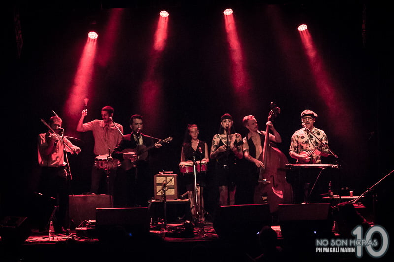 A las 22.05hs entran a escenario 7 músicos de diferentes alturas y accesorios, todos con el propio estilo de la banda, ese que te recuerda a la década de los 50s. Dan inicio a su show donde escucharemos canciones que oscilan entre el castellano y el inglés, recorriendo diferentes décadas y estilos pero siempre con al menos el sonido de un ukelele presente.