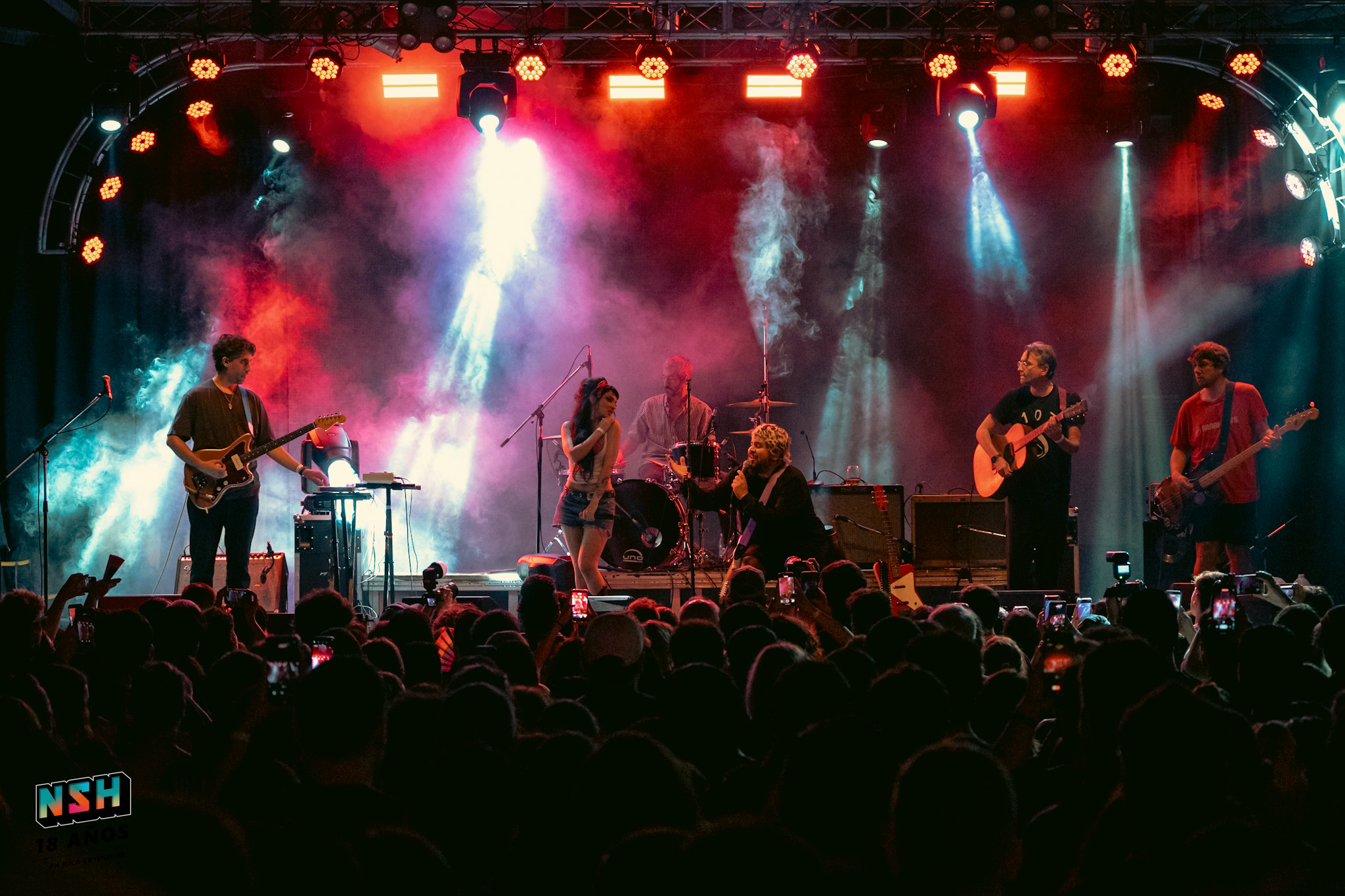 Uno de los cruces más celebrados de la noche fue “Ridículo”, interpretada junto a Juana Rozas. El encuentro no se sintió como un momento aislado, sino como una extensión natural del clima del show: dos universos distintos que se cruzan desde la sensibilidad y no desde el impacto. Algo similar ocurrió con la versión de “Jazmín chino” de 107 Faunos, que funcionó como un gesto afectivo hacia una escena compartida más que como un simple cover.